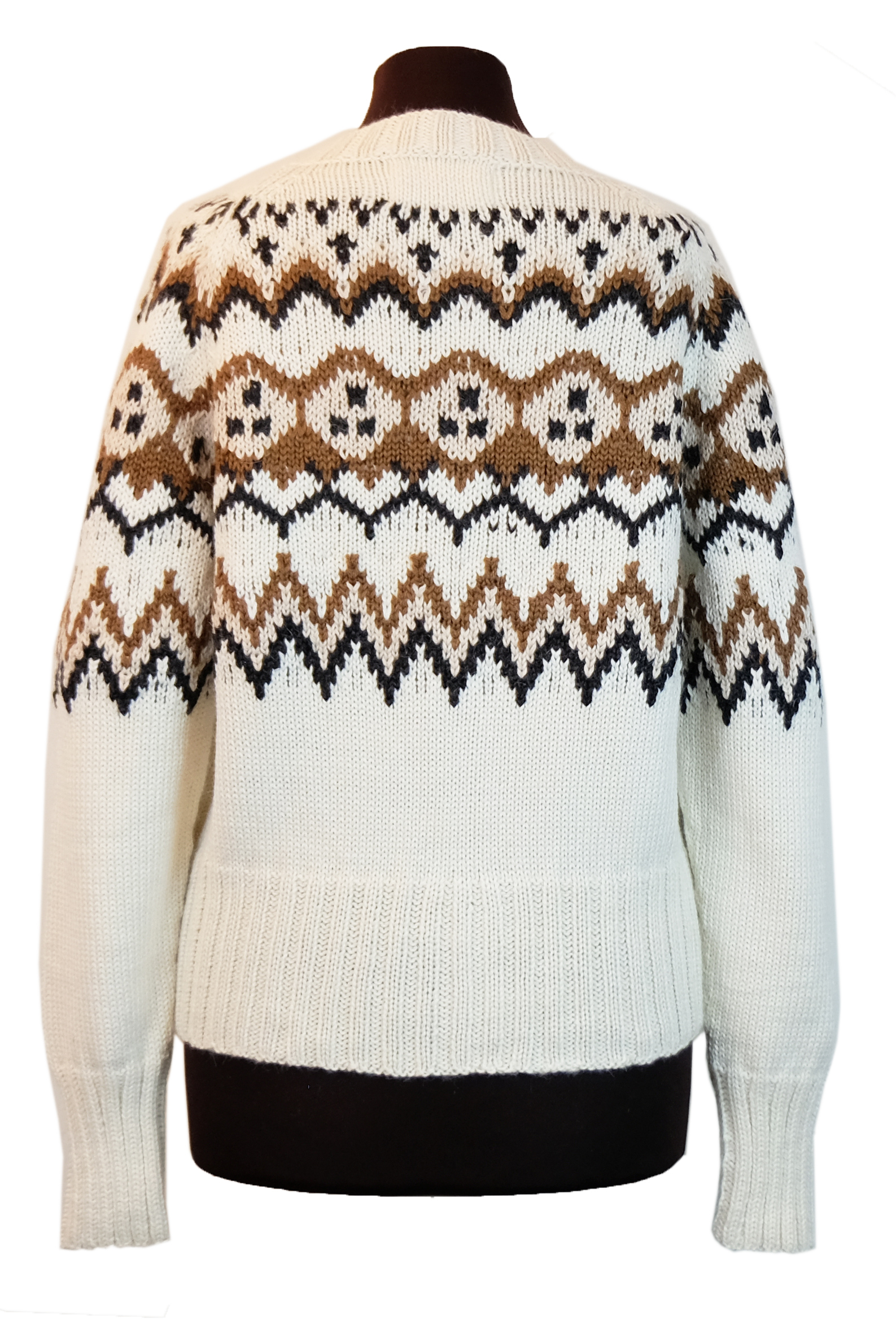 Eine Strickjacke aus 100% peruanischer Alpakawolle. Klassisches Norwegermuster, in der traditionellen Farbstellung aus ungefärbter naturfarbener und brauner Alpacawolle. Kokosnußknöpfe. Die Jacke wurde von unserem jahrelangen Lieferanten in Peru exklusiv für america latina gefertigt. Maße Größe M: Brustweite 50 cm, Gesamtlänge 52 cm. Pflege: das Material ist sehr empfindlich, jedoch gleichzeitig schmutzabweisend, sodaß Lüften in der frischen Luft grossteils das Waschen erspart. Reinigung oder Handwäsche in handwarmem Wasser. Ein mildes Waschmittel ist empfehlenswert!