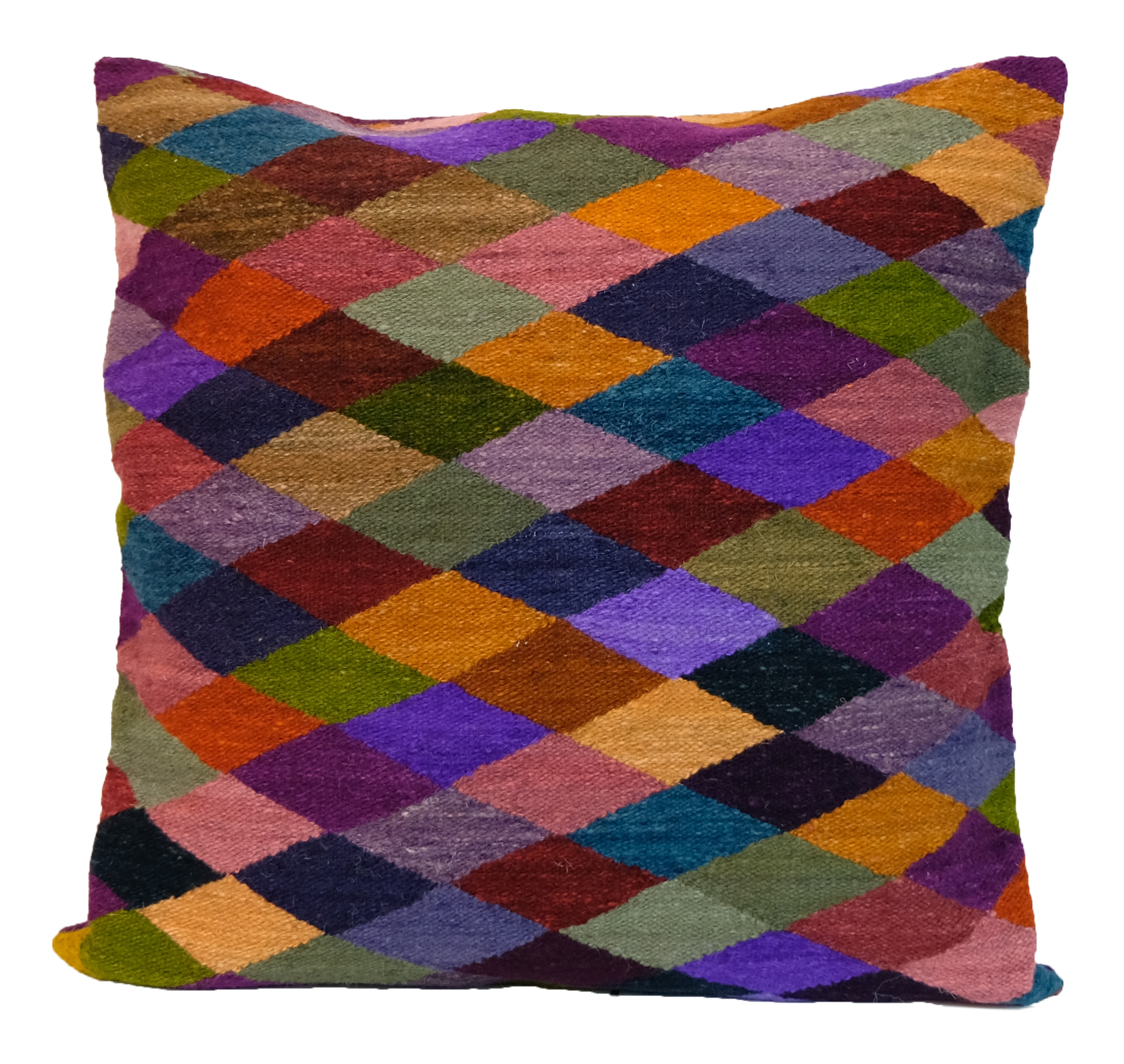 Ein eindruckvoller Kissenbezug aus 100% Schafwolle. Das Besondere an diesem Stück ist die durchgehende Rautenmusterung in kräftigen landestypischen Farben, die die Kultur Perus wiederspiegeln. Rückseite einfärbig. Maße: 45×45 cm. Reinigung empfohlen.