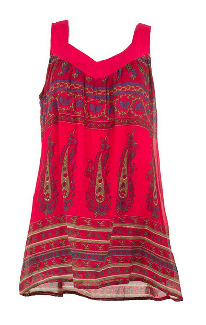 Ein ärmelloses Trägertop, dessen leuchtend roter Print gute Laune macht. Im Zentrum ein hübsches Paisleymuster, umgeben von farblich abgestimmten Bordüren. Der V-Ausschnitt ist einfärbig eingefasst. 100% Baumwolle. 30° Wäsche.