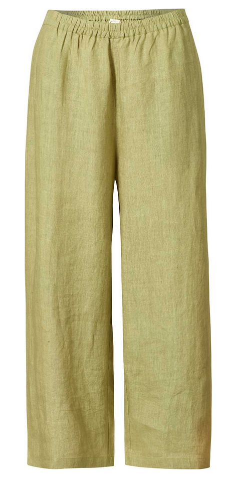Eine gerade geschnittene Hose aus 100% Leinen mit innen liegendem Gummizug im Bund, der komfortable Bewegungsfreiheit gibt. Farbe: ein milder Olivton. Pflege: 30° Maschinwäsche.
